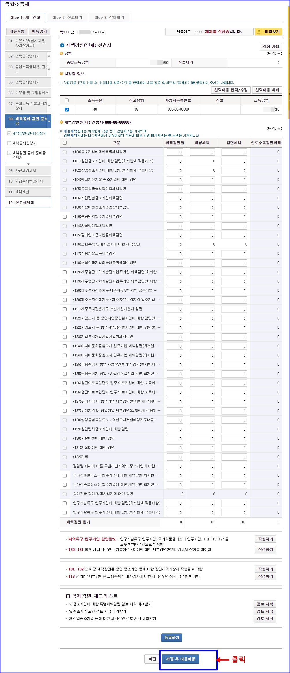 세액감면(면제)신청서 여기도 그냥 넘어가죠. 세액감면 받을 거 대부분 없잖아요.^^