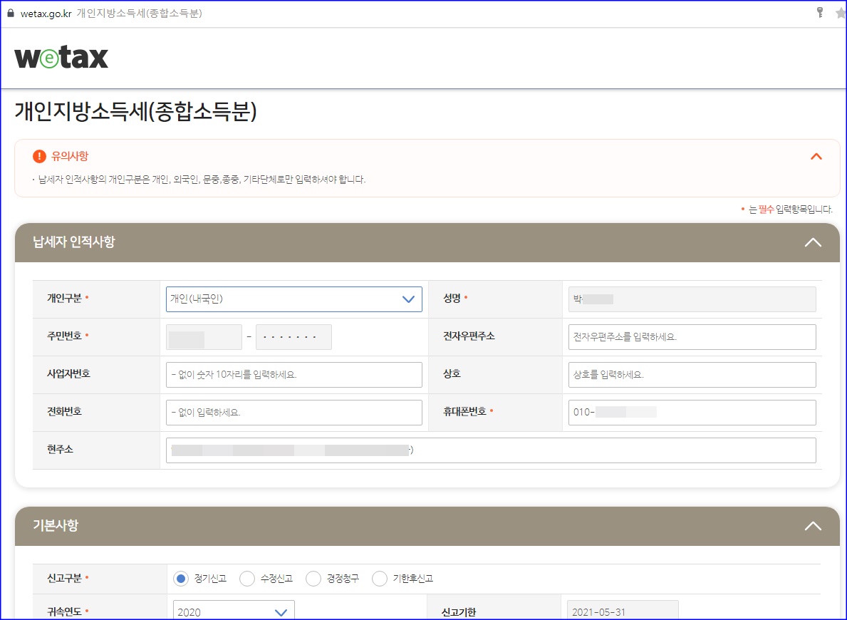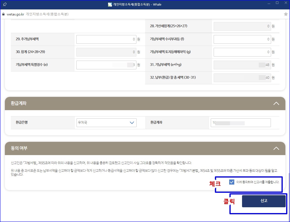 모든 이미지의 모자이크 처리한 건 다 입력되어 진거고요. 지방소득세도 따로 환급되어 집니다.