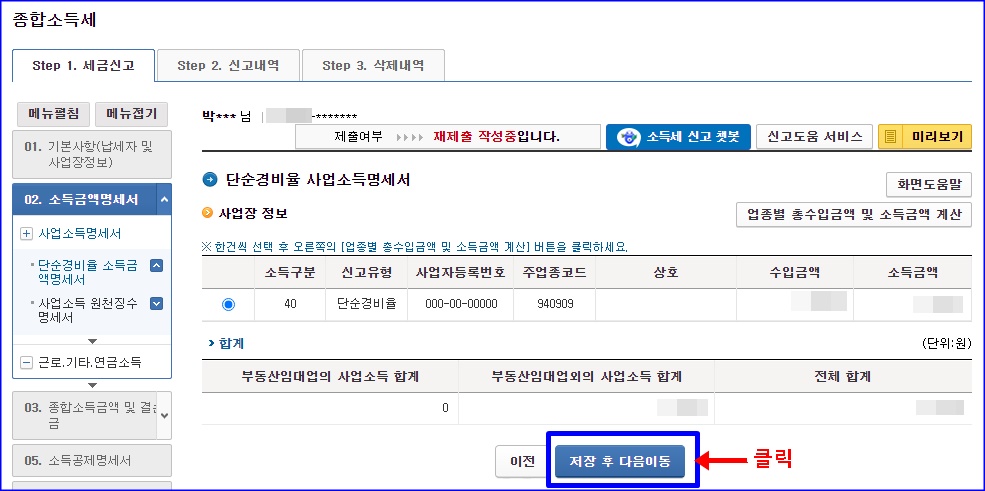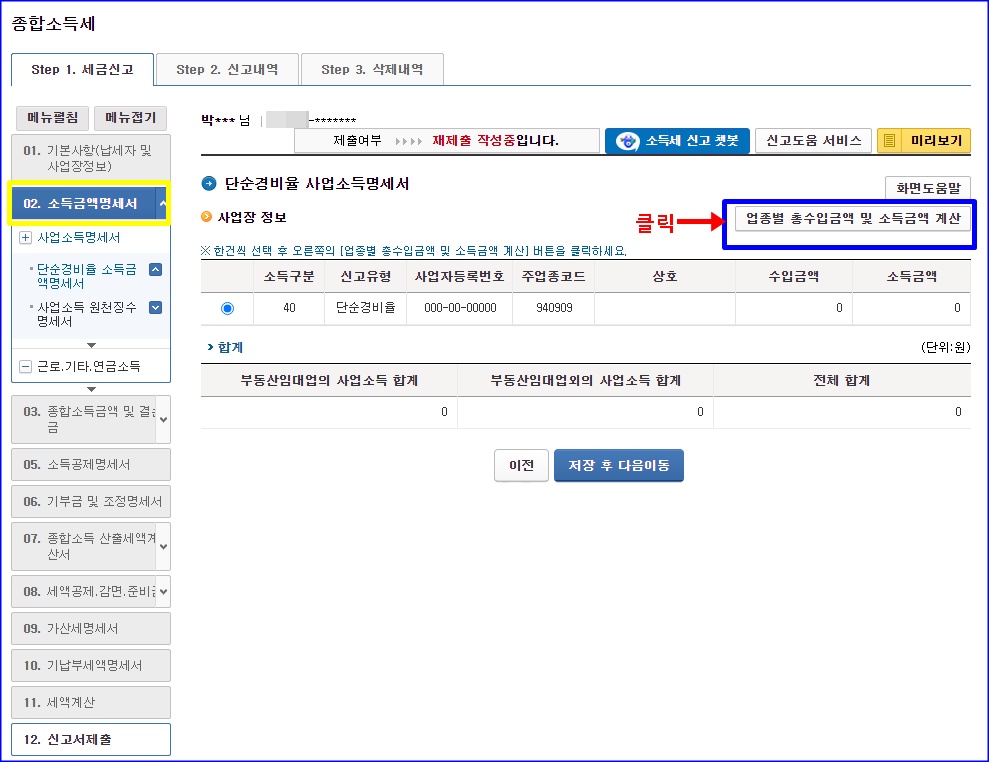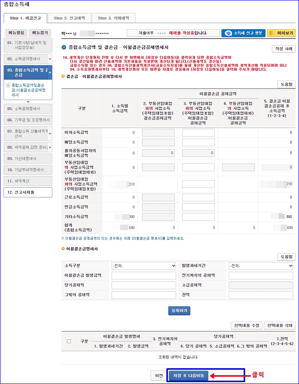 종합소득금액 및 결손금 이월결손금공제명세서 단계는 복잡하게 인생 사시는 분들 아니시라면, 대부분 그냥 넘어가면 될 겁니다.